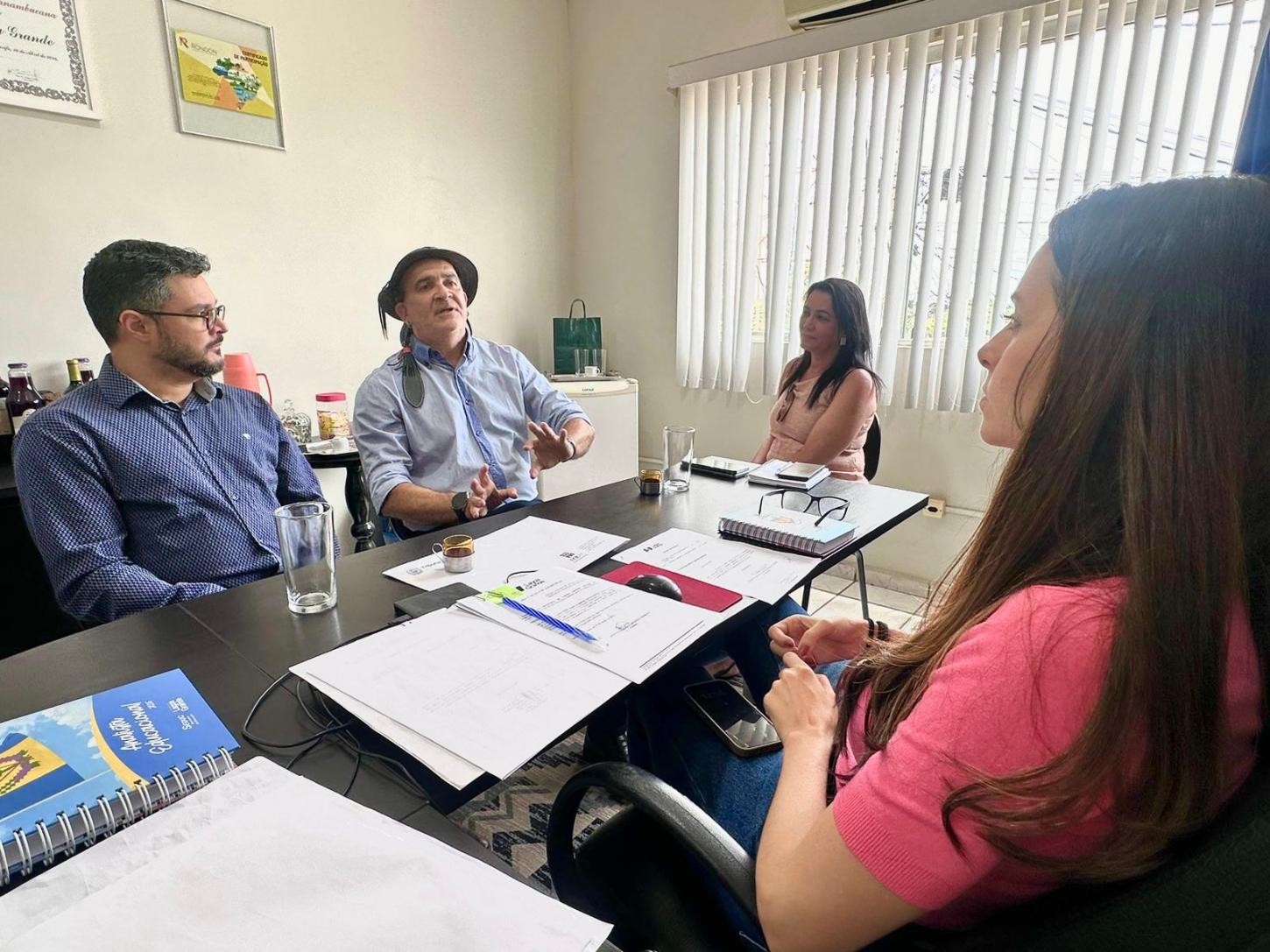 Além do professor Jean Carlos, a reunião institucional contou com as presenças do pró-reitor de ensino Rafael Aquino, do pró-reitor de pesquisa, inovação e pós-graduação, Francisco Gama, da coordenadora do Polo UAB Professora Fabiana Ribeiro e do secretário de Governo Jorge Garziera.