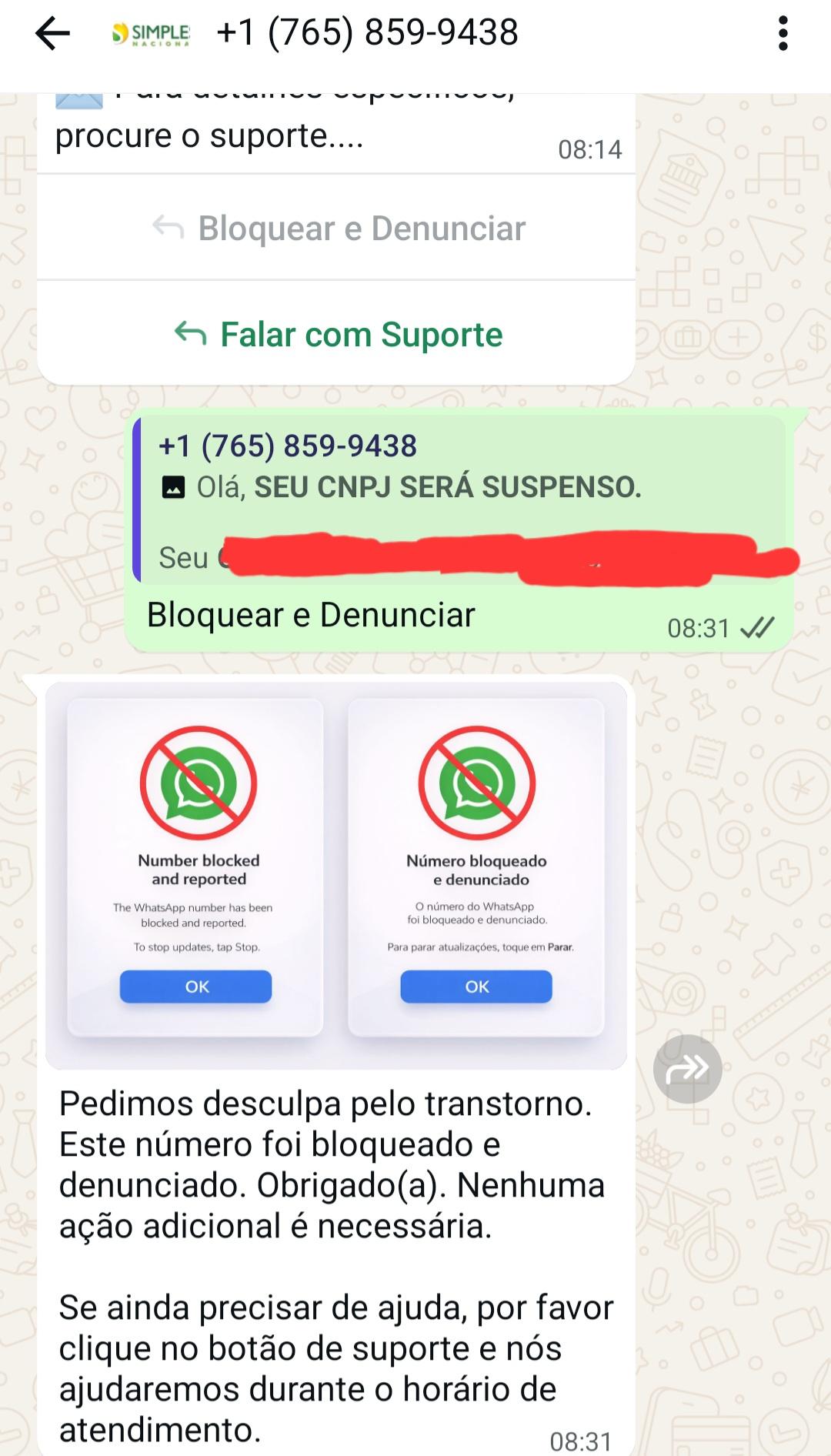 O leitor não pensou duas vezes e denunciou a conta ao WhatsApp.