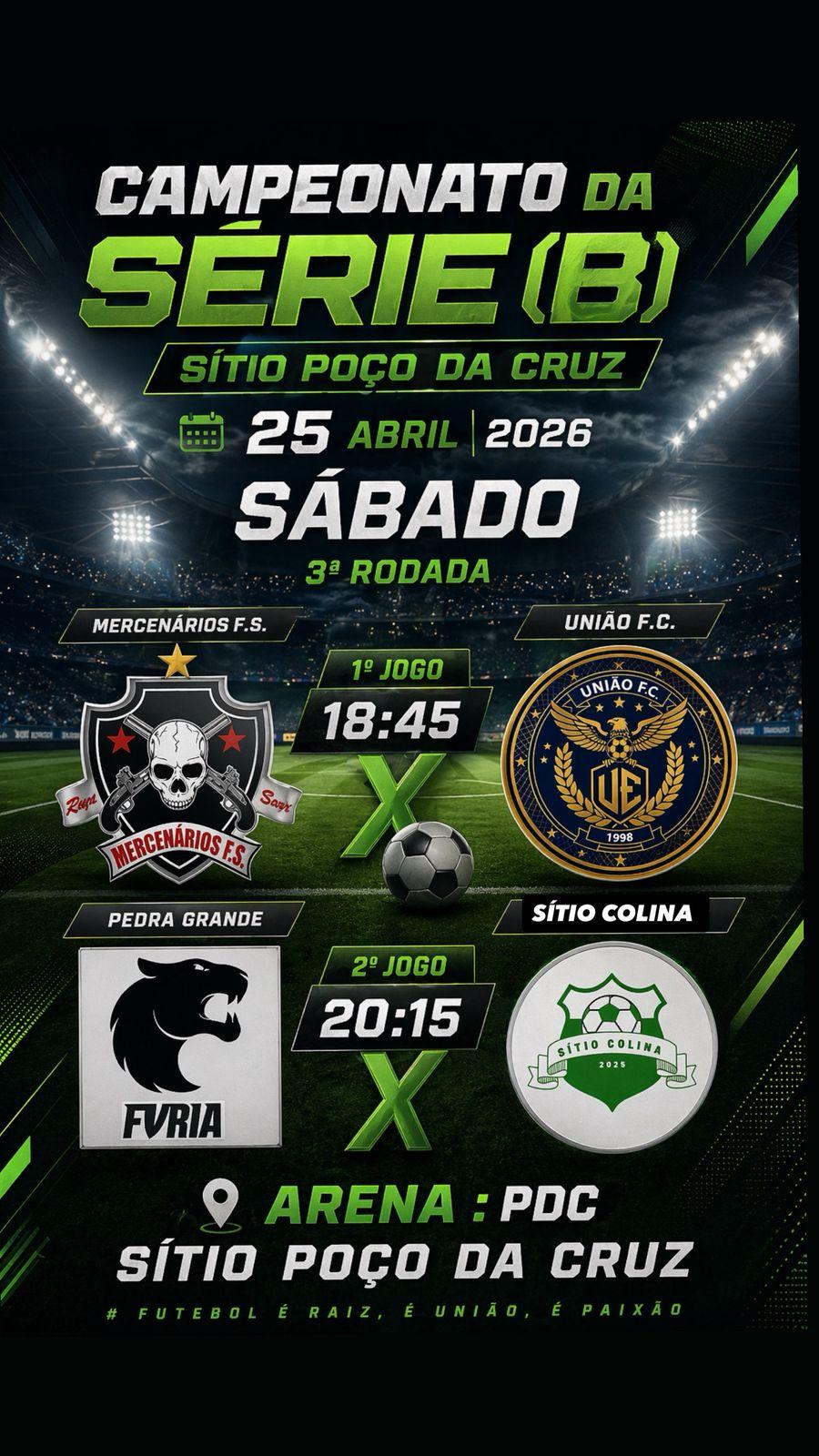 A bola vai rolar pela 3ª rodada do Campeonato da Série B, do Sítio Poço da Cruz, na região das Pedrinhas em Petrolina-PE, neste sábado (25).