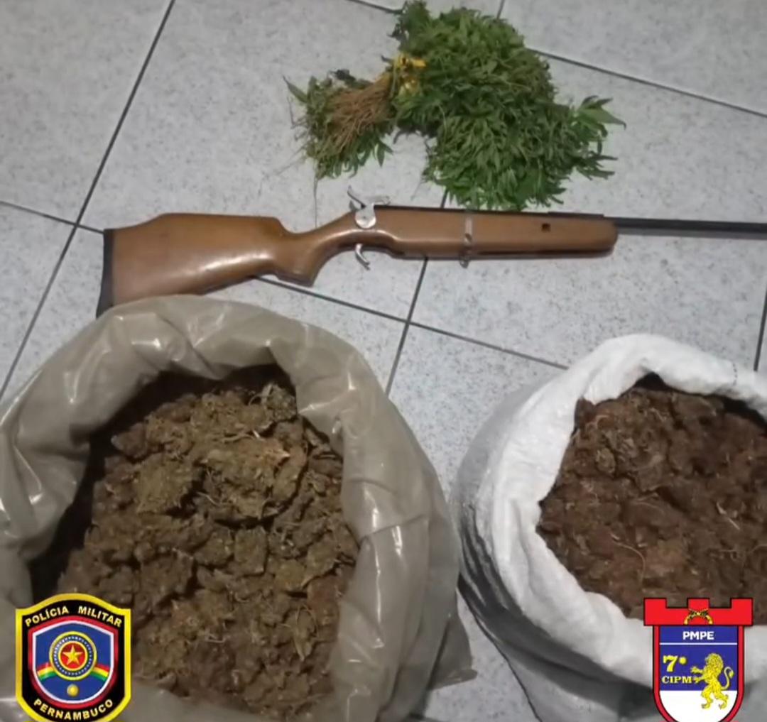 Ainda em Lagoa Grande-PE teve outra operação da PM, resultando na erradicação de 2100 (dois mil e cem) pés de maconha, distribuídos em 420 (quatrocentos e vinte) covas, além da apreensão de 11 (onze) quilos de maconha pronta para o consumo e 01 (uma) espingarda artesanal.