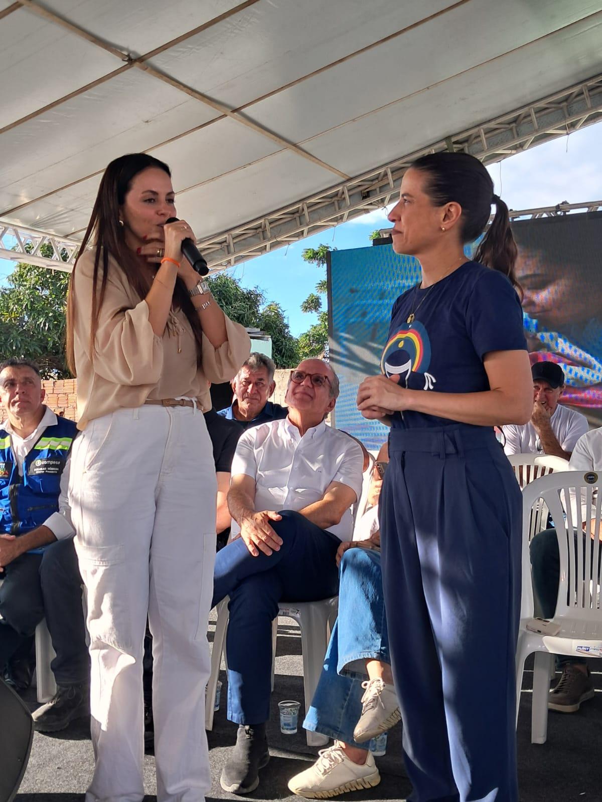 A governadora Raquel Lyra (PSD), acompanhada da sua vice Priscila Krause (PSD); senador Fernando Dueire (MDB); deputado estadual Jarbas Filho (PSD); prefeitos Simão Durando (União Brasil) e Catharina Garziera (MDB) e seus vices Ricardo Coelho (União Brasil) e Olavo Marques (PSD) - respectivamente de Petrolina-PE e Lagoa Grande-PE; ex-prefeitos Jorge Garziera (MDB) e o pré-candidato ao Senado, Miguel Coelho (União Brasil), e vereadoras (as) e secretários (as) de Lagoa Grande-PE e Petrolina-PE.
